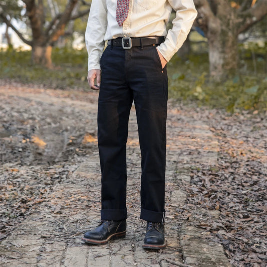 Red Tornado Black Men's Jeans Relaxed Fit 14.5oz Selvedge Denim Officer Trousers