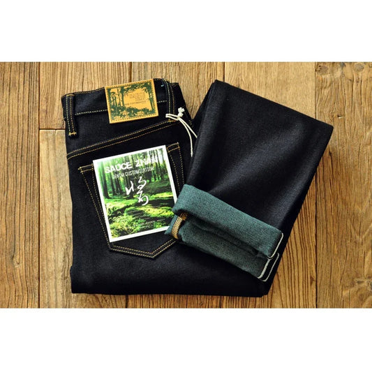 Saucezhan EX315XX-Forest Jeans for Men Selvedge Raw Denim Jeans Mens Jeans Vintage Jeans Men Double Staining Taper Fit 20.5 OZ