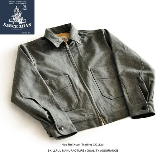 SauceZhan 1940 Safari Style Jacket Short Work Jacket VINTAGE 100% Cotton Men Jacket Solid Mens Jackets Chamarras Para Hombre