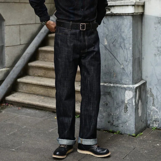 SauceZhan 316XX Casual Selvedge Jeans Raw Denim Jeans Unwashed Selvage Indigo Denim Jeans Straight Mens Jeans
