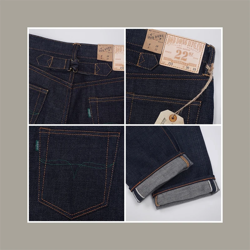 BOB DONG 22oz Men's Buckle Back Jeans Pocket Designs Rigid Selvedge Denim Pants