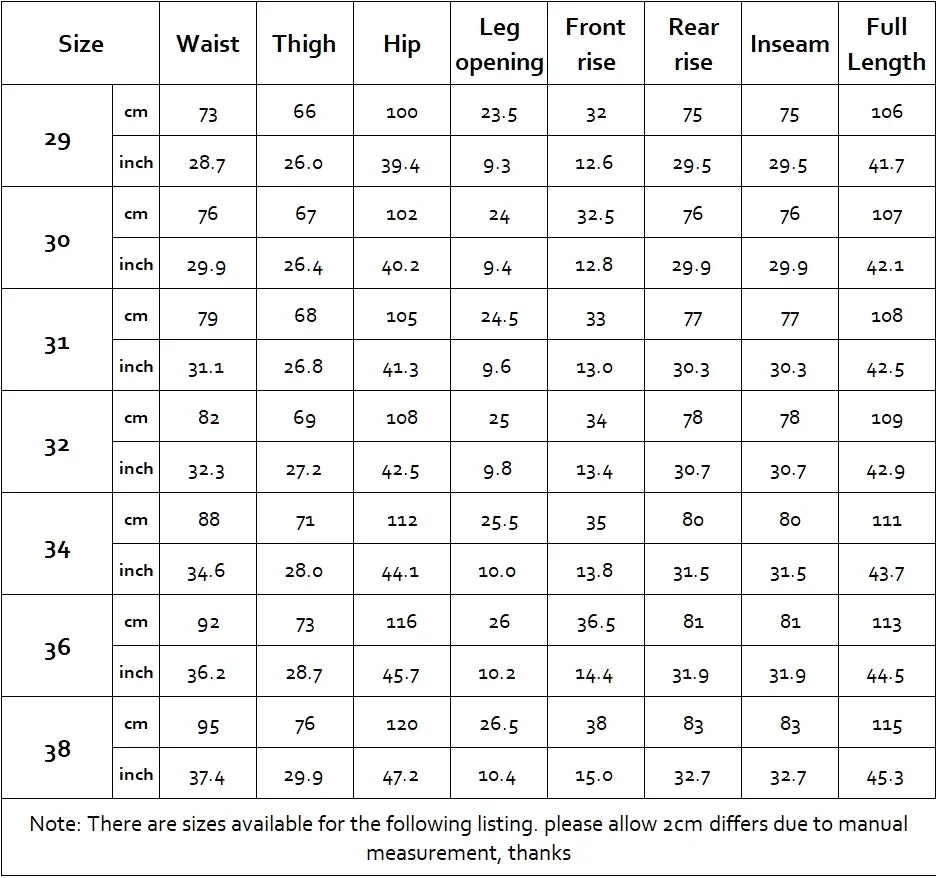 Waist Size(in inches): 29 - 38