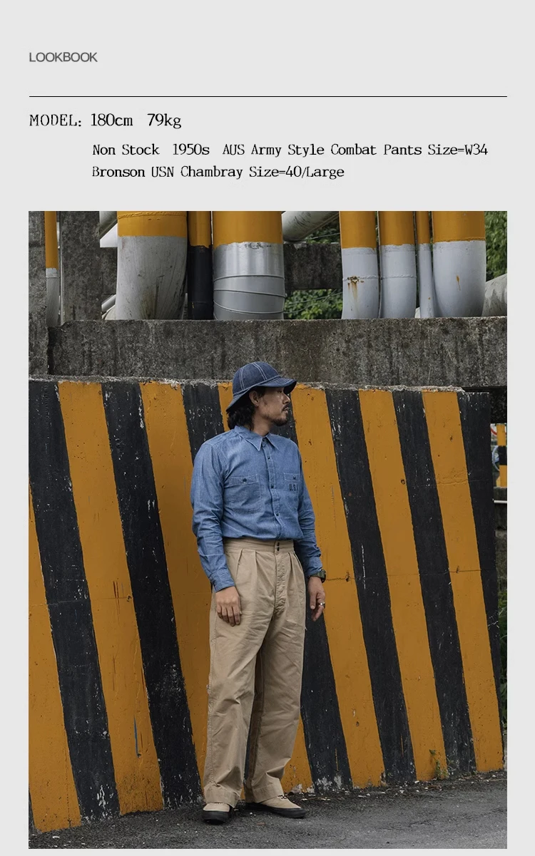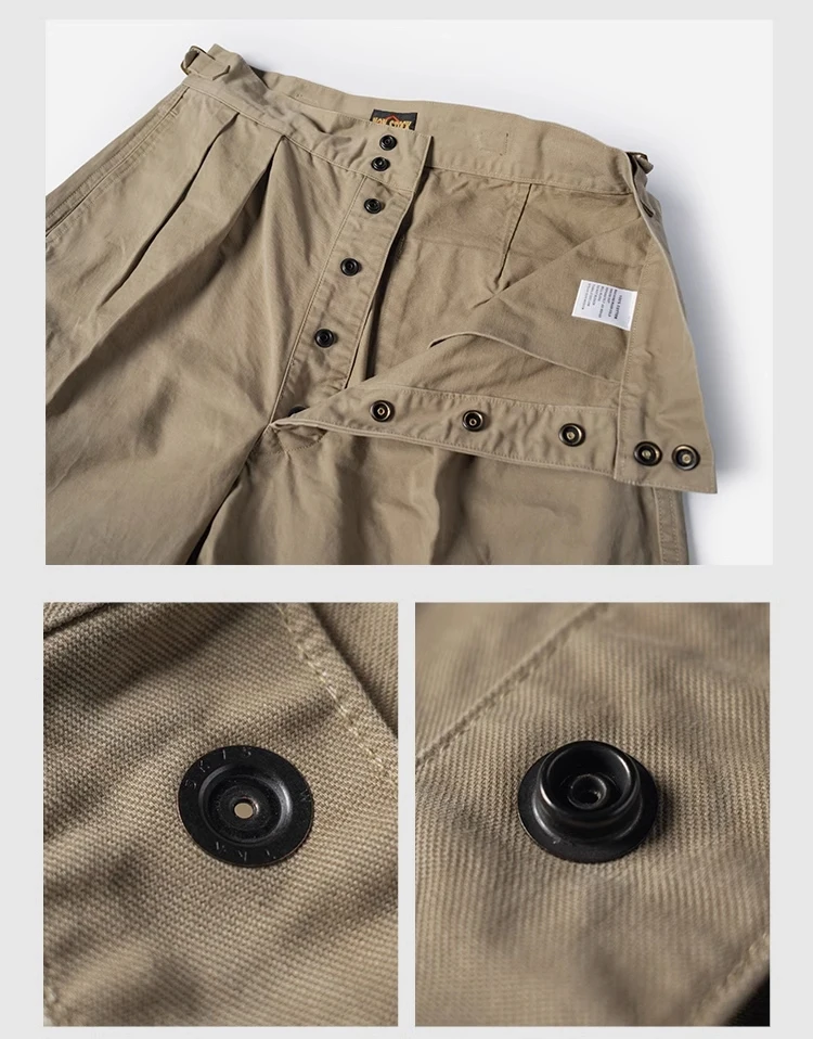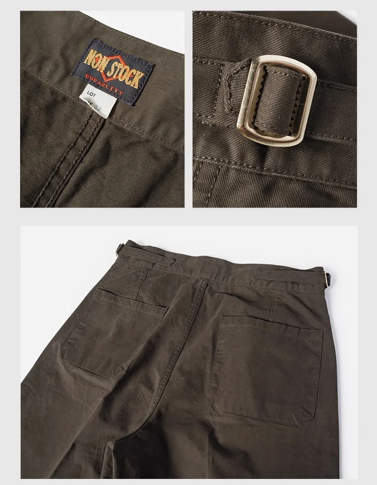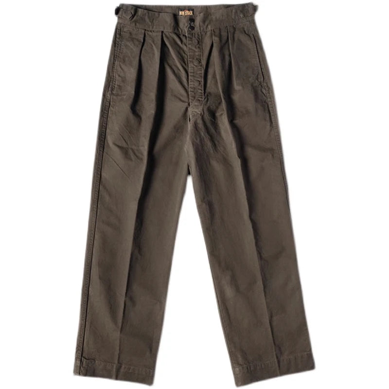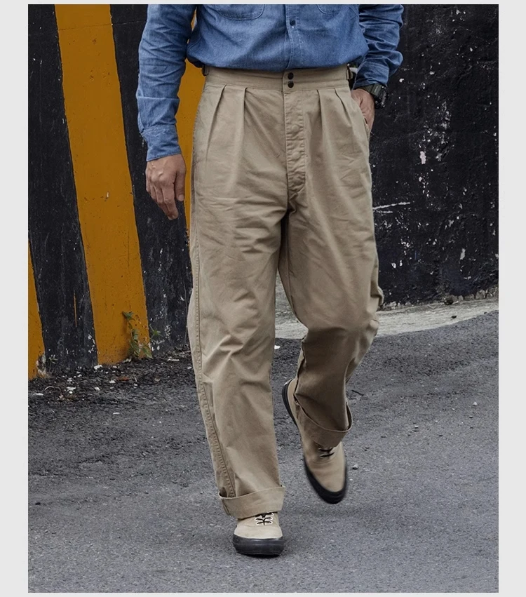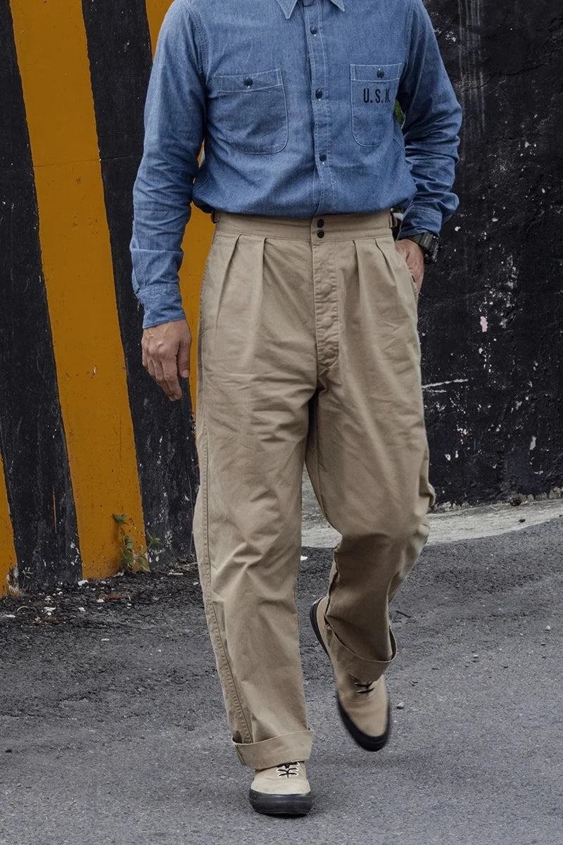 Non Stock 1960s Military-Inspired Chino Pants Cotton Twill Pleat Casual Trousers