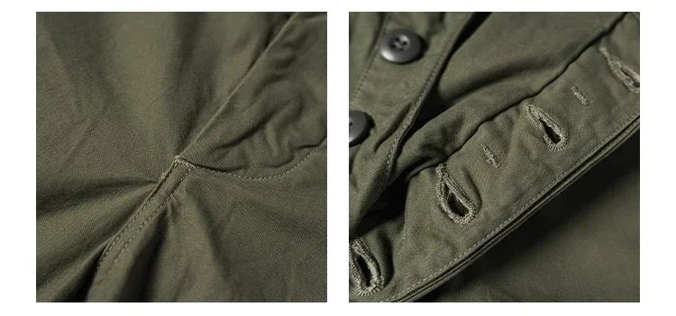 - Attention to details - including waist tabs, exposed buttons, air hole at the bottom of pocket, straps with swipes in cargo pockets for weight relief, military spec. lables and bottom drawstrings