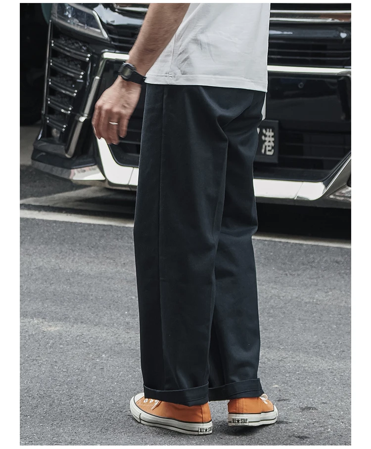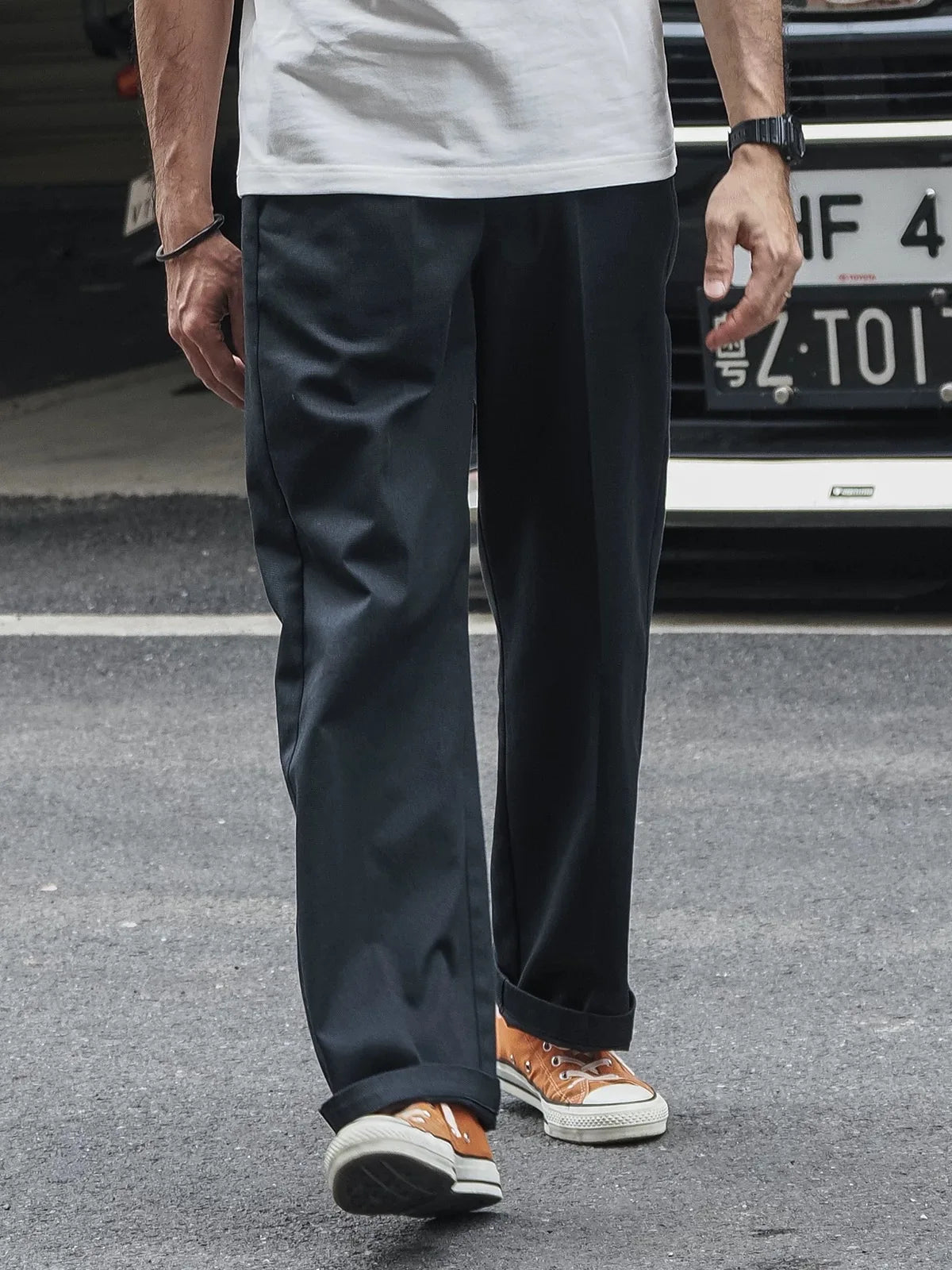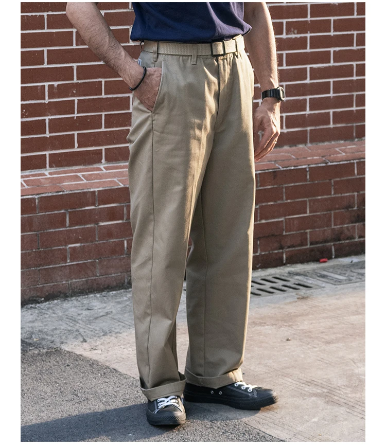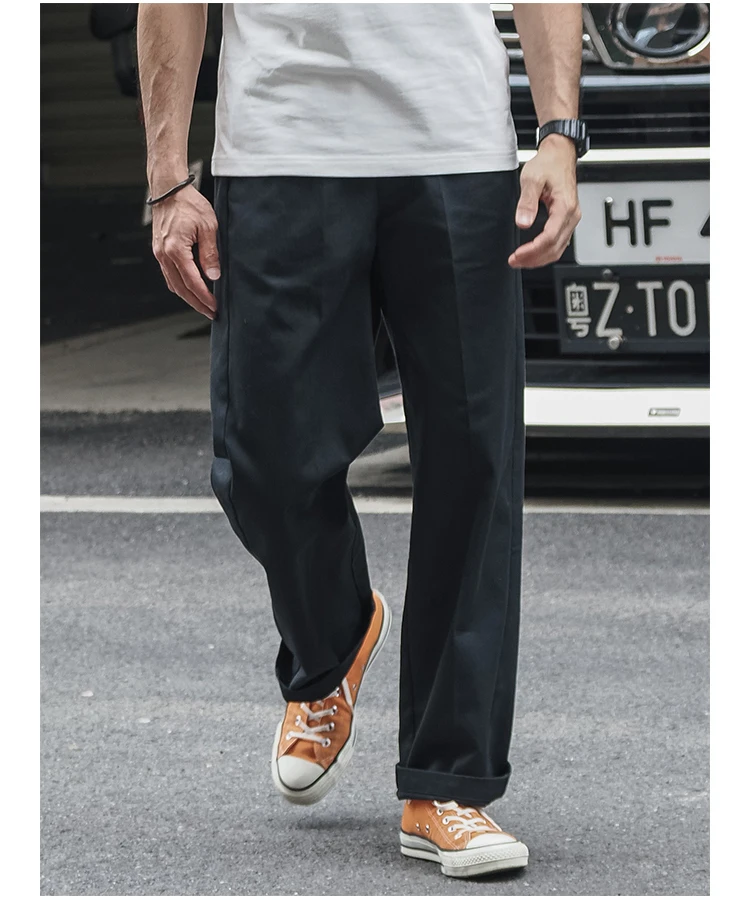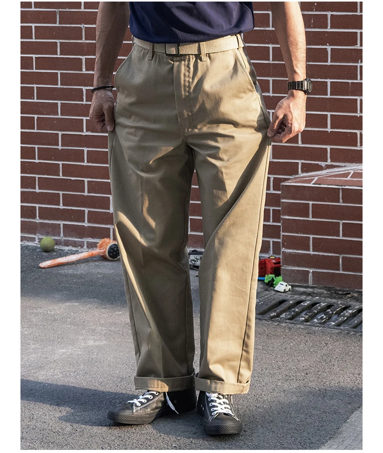 Non Stock Cotton Polyester Work Pants Relaxed Straight Cut High Waist Casual Trousers For Men