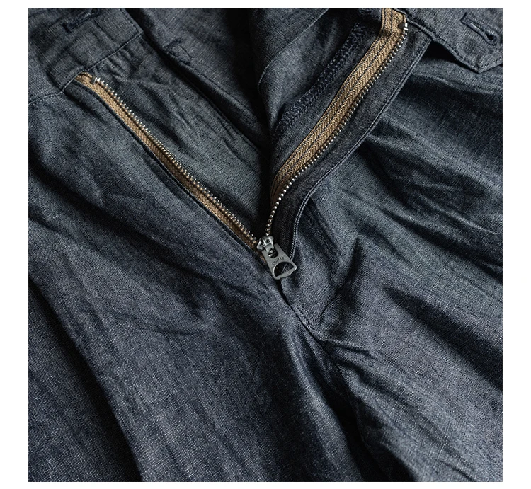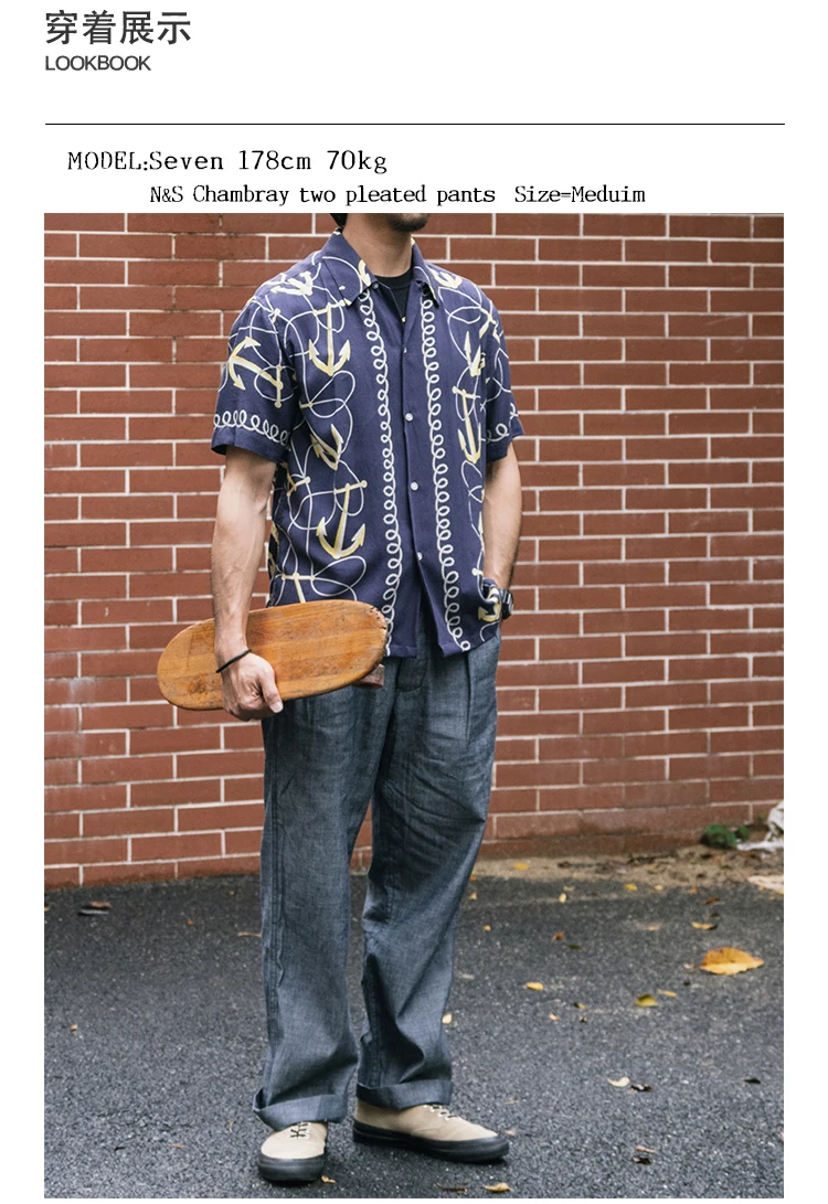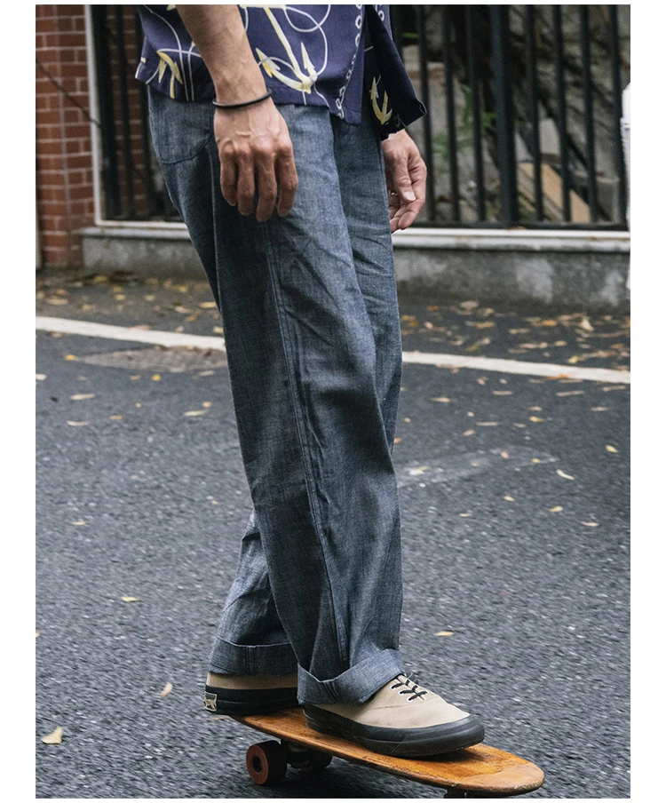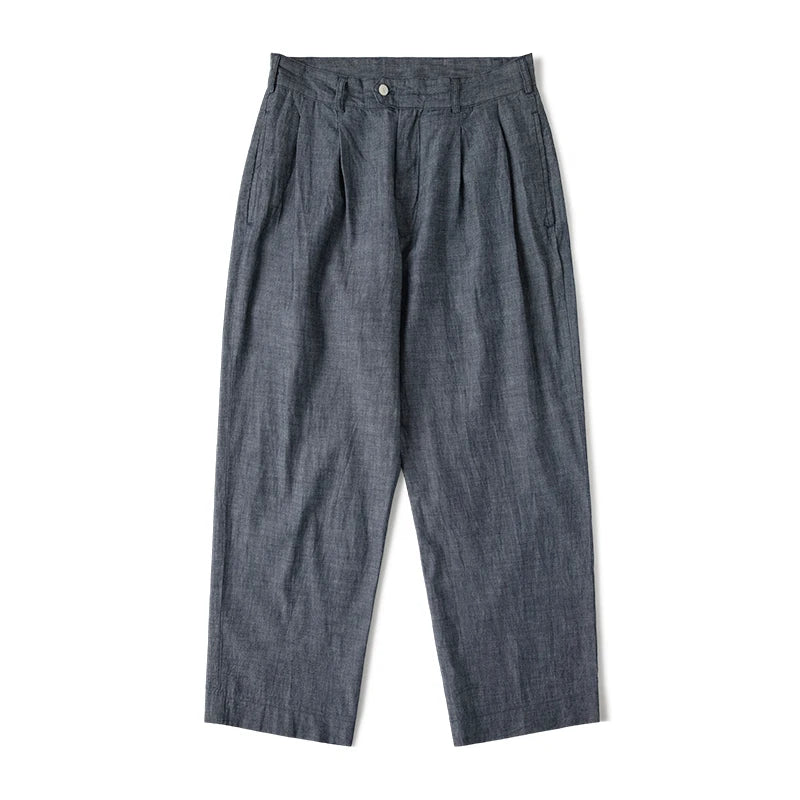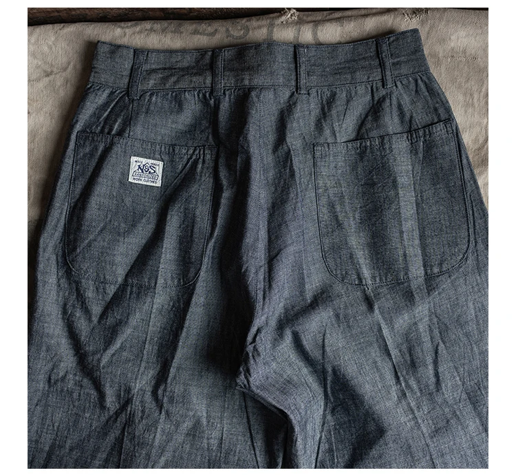 Non Stock Lightweight Chambray Pleated Pants High Rise Loose Straight Leg Men's Leisure Trousers