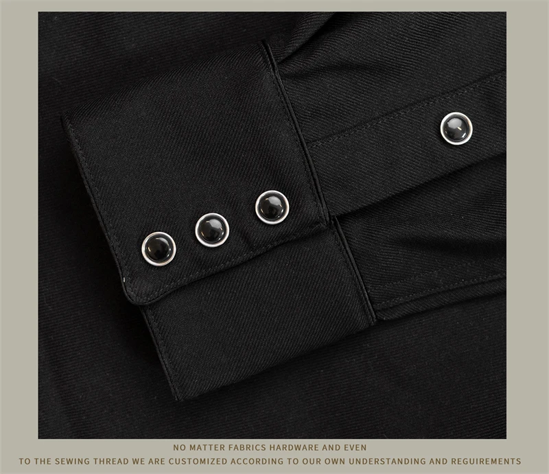 - Snap buttons on the placket