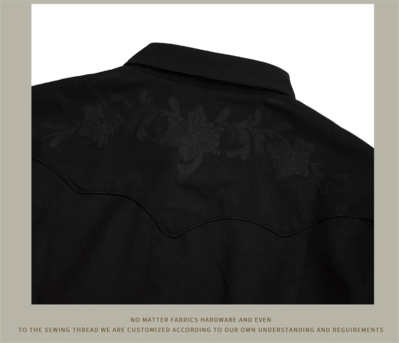 - Exquisite Black-on-Black embroidery