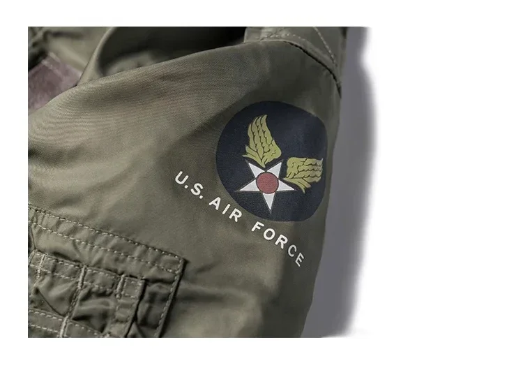 - USAF insignia transfer on left sleeve in full color, and under maker label in lining in off-white stencil form