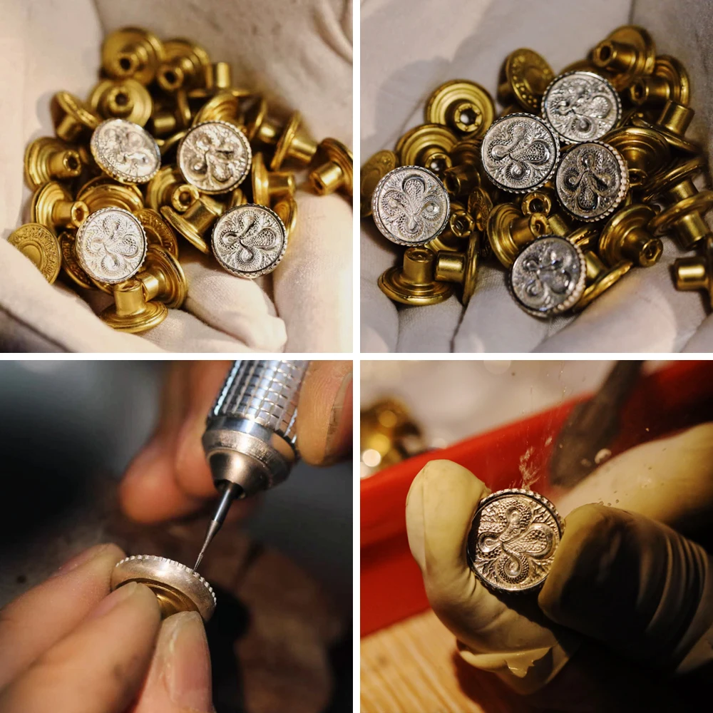 The secondary button is crafted from silver-plated brass. To enhance the design details, this Summer Snake Year edition features a serpent motif on the secondary button as well. Over time, with wear, the silver plating will gradually fade, revealing the warm golden tones of the underlying brass.