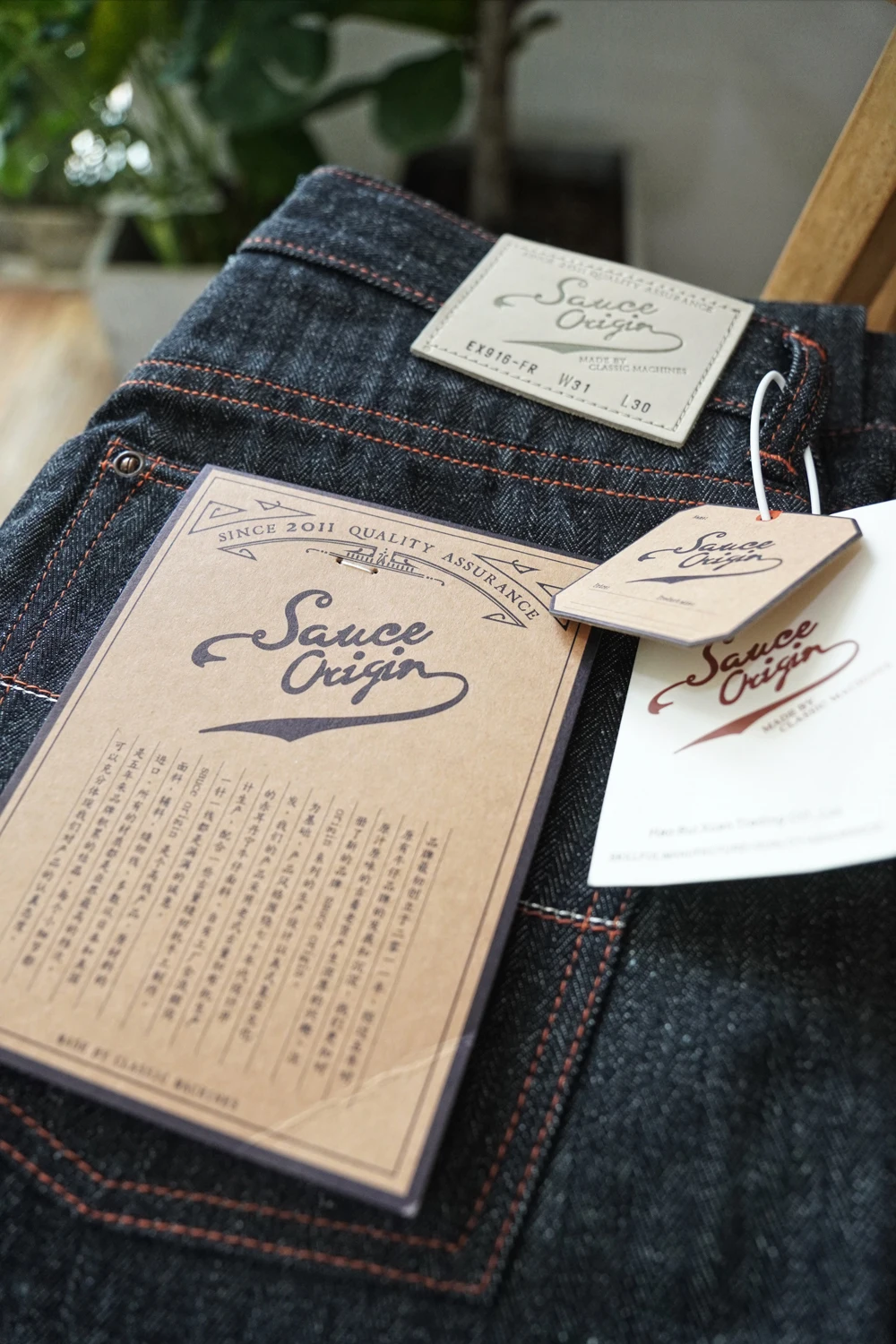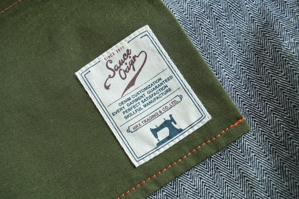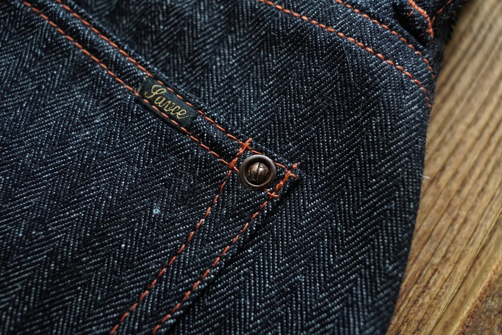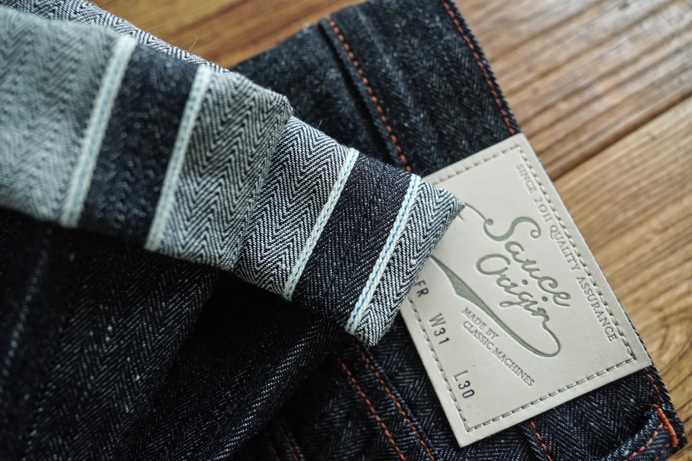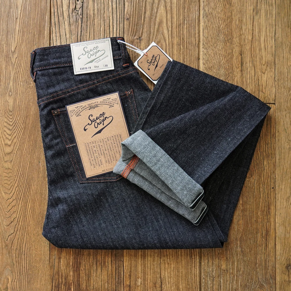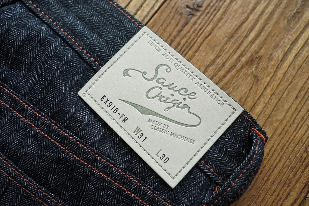 Based on our classic 916XX silhouette, the EX916 features an extended rise for improved comfort and fit. The fabric is entirely self-developed and exclusive to our premium SAUCE ORIGIN line. This version combines a distinctive herringbone weave with a cotton–ramie blend yarn, composed of approximately 78% cotton and 22% ramie fiber. The result is a fabric that excels in heat dissipation and breathability—perfect for hot summer wear.