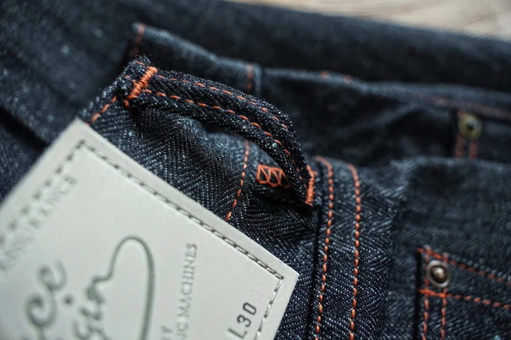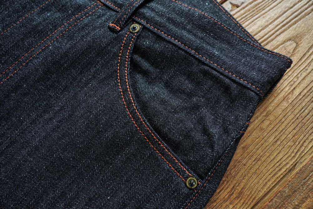 This special release features our newly developed Herringbone Selvedge Denim, woven on vintage imported narrow-loom machines. By adjusting the heddle setup and weaving sequence, we’ve altered the yarn alignment to create a distinctive herringbone texture. Unlike the more common twill selvedge denim, this weaving style offers a unique visual identity and collectible appeal.