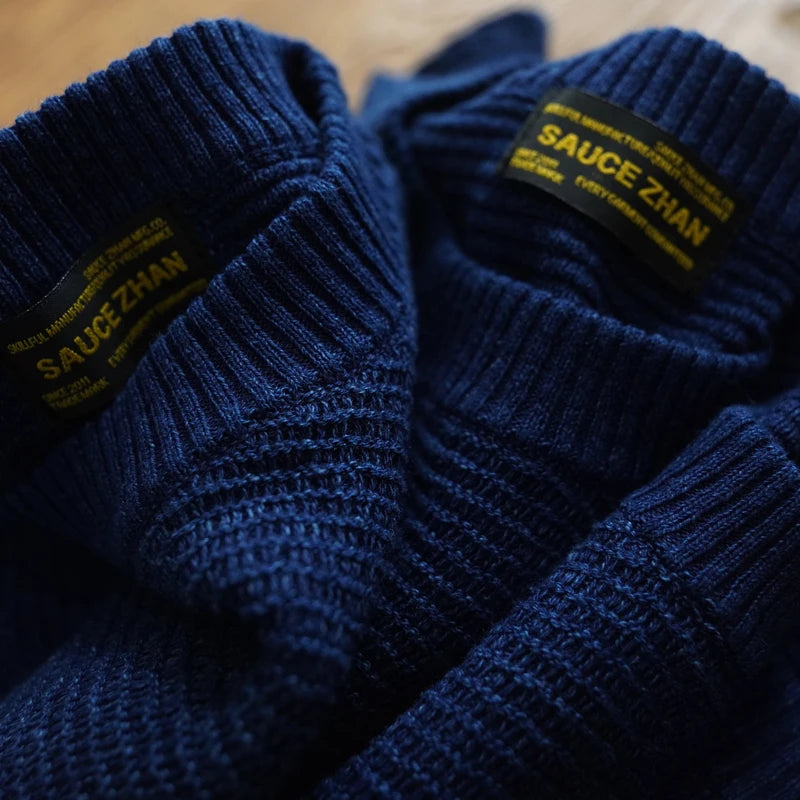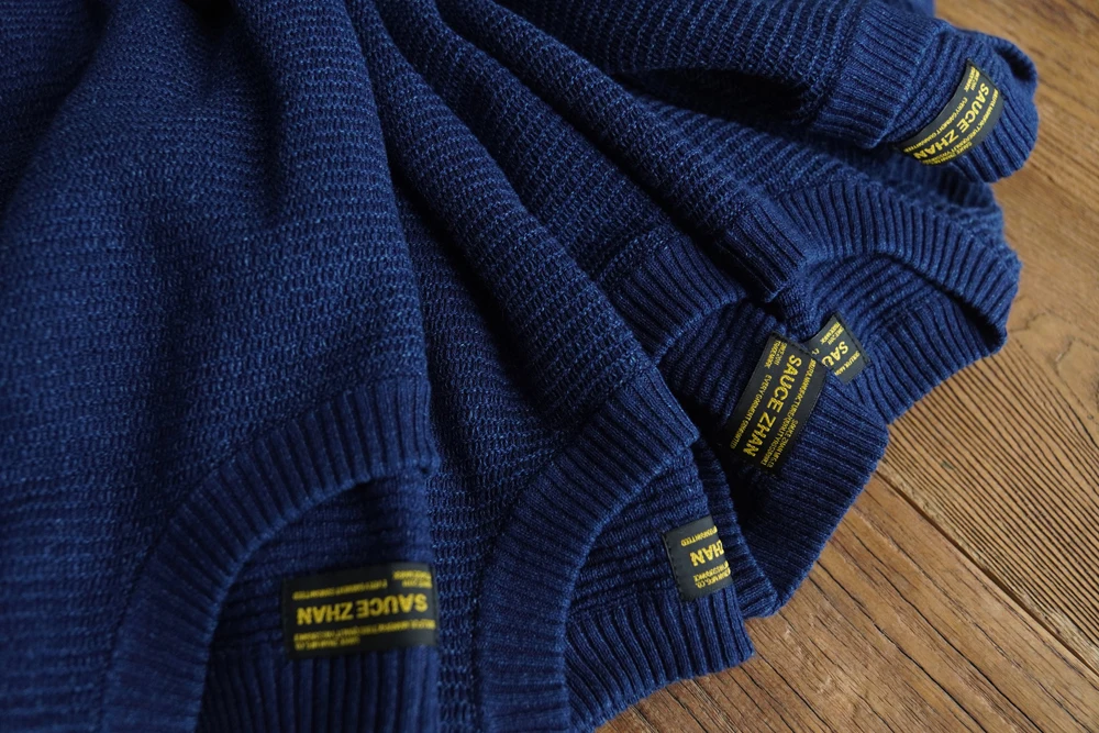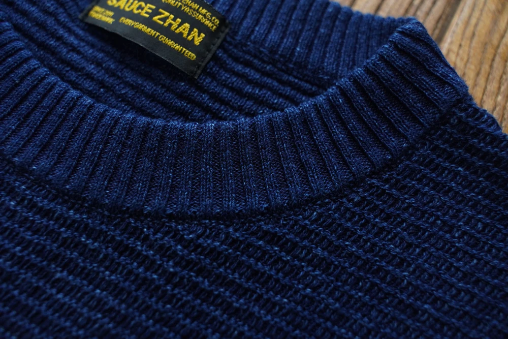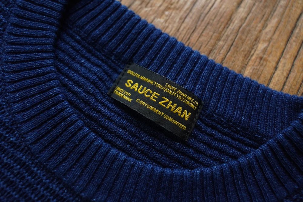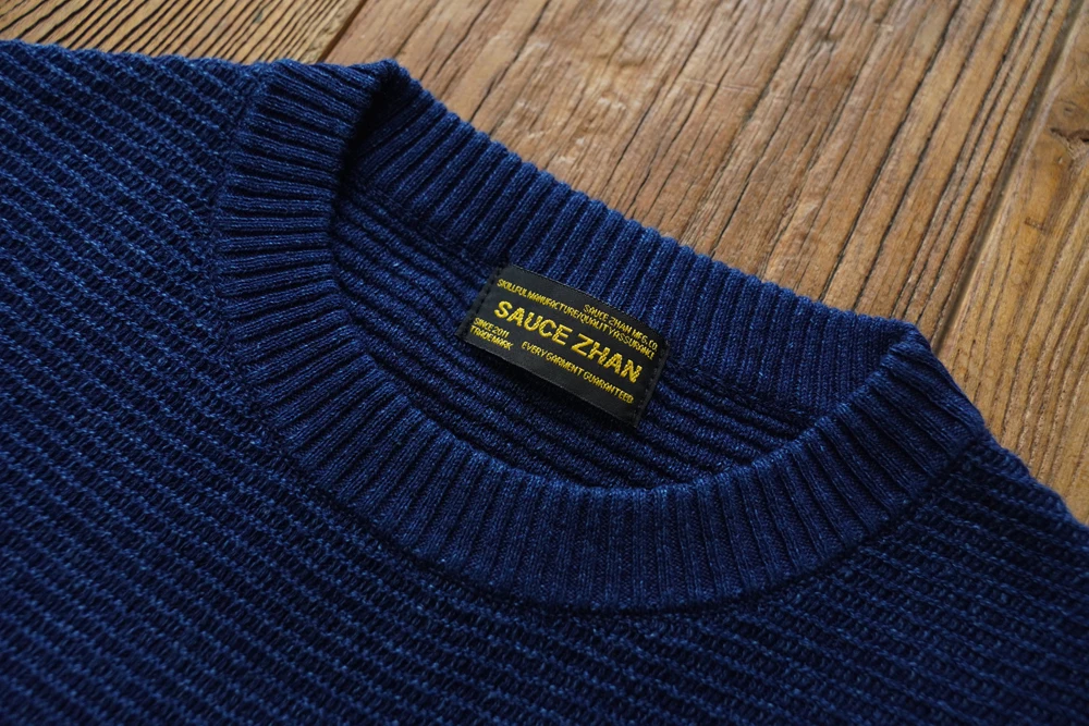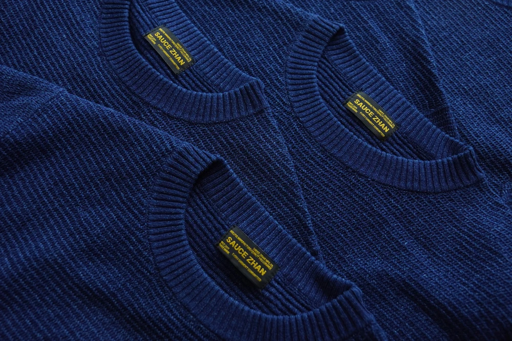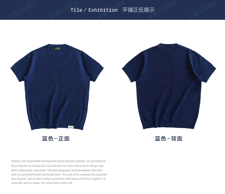 Sauce Zhan Men’s Summer Knit T-Shirt Short Sleeve Tee Indigo Dye O-neck Loose Fit