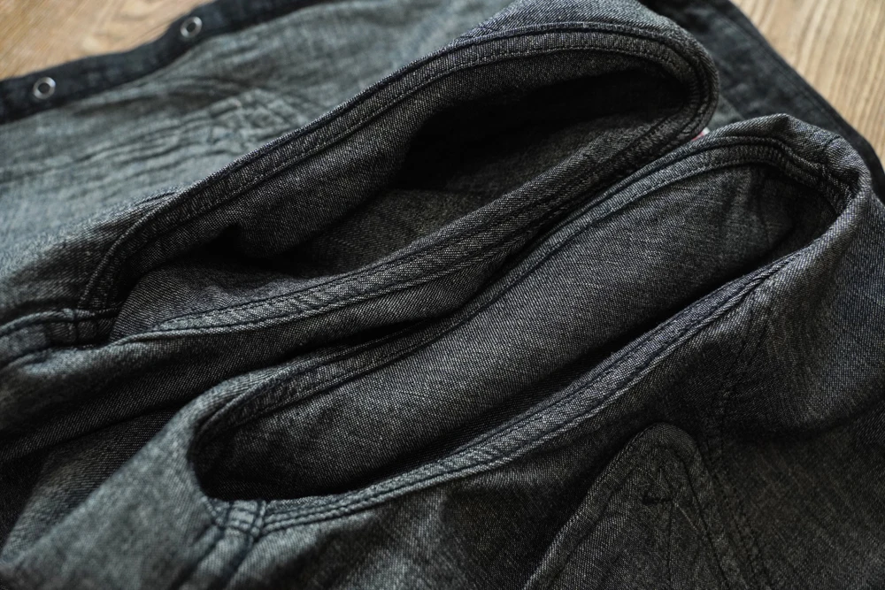 Whether paired with denim jeans or canvas trousers, the look is effortlessly striking. (While the dark denim fabric has strong color fastness, slight surface fading may occur in the early stages. Wash separately from light-colored garments.)