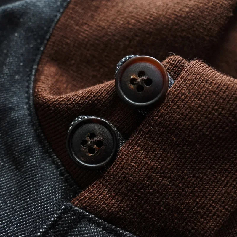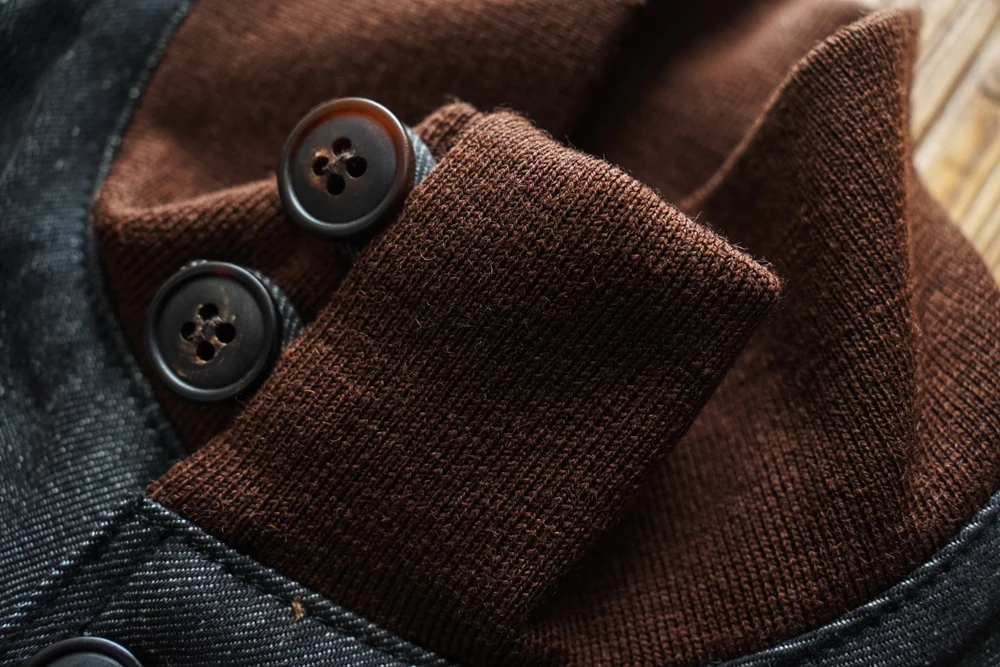 Care Instructions: The ribbed sections of the jacket are made from high-quality wool, which generally requires dry cleaning and should not be washed. However, if the jacket gets dirty and dry cleaning is not convenient, you can soak it in cold water with a mild detergent. Avoid vigorous scrubbing, and machine washing should be avoided. The denim portion uses reactive-dyed selvedge fabric, which is highly colorfast, so there's no need to worry about color bleeding.