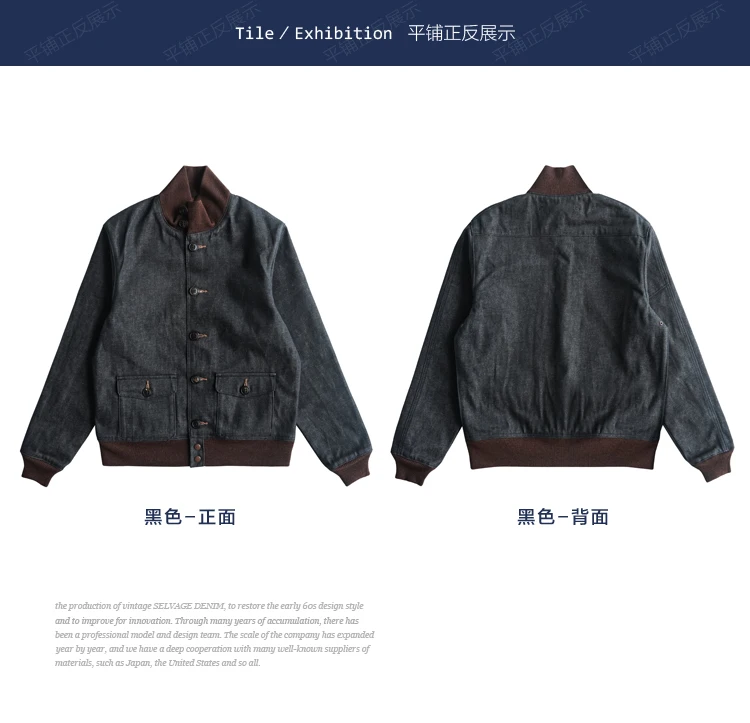 Sauce Zhan Mens Jacket Short Lined Selvedge Denim Jacket Men A1 Flight Jacket Regular Fit