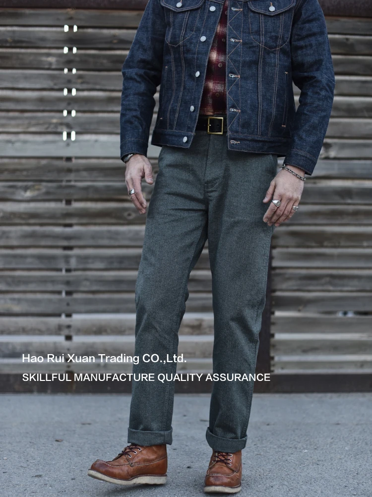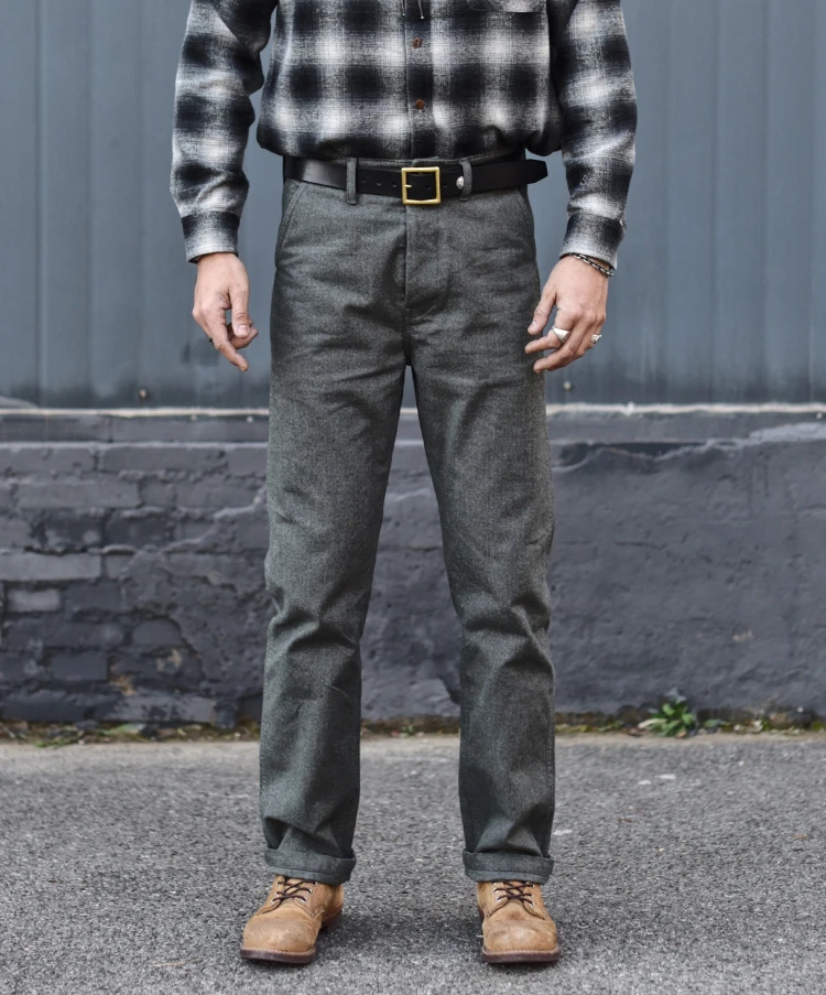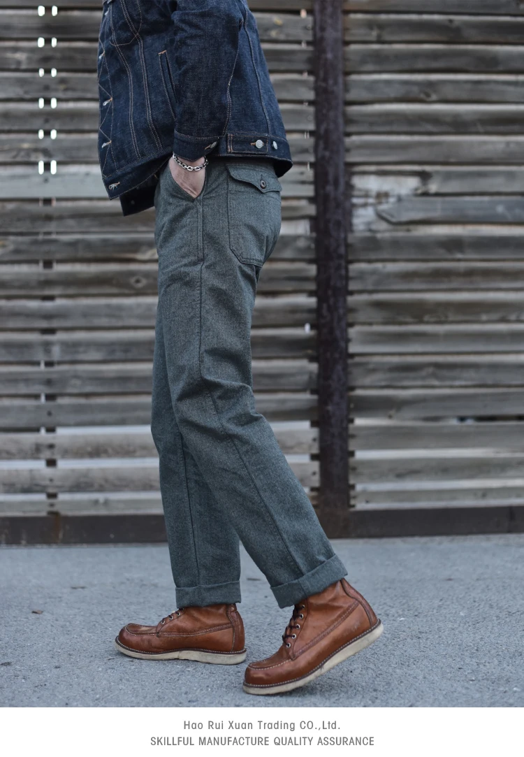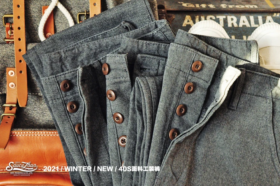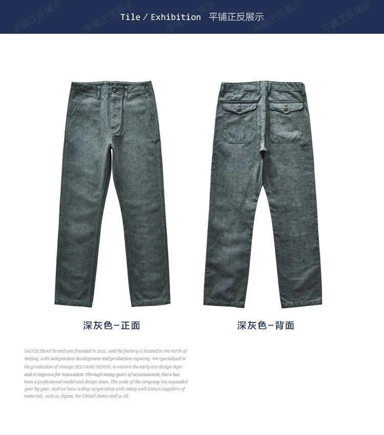 This is a classic version of overalls. Its fabric is re-customized based on the fabric of the overalls of the 1940s. The fit of the trousers is the same as the OG107 military trousers in the store, with high waist and straight-leg pants. The fabric has been custom developed and matched with retro colors.