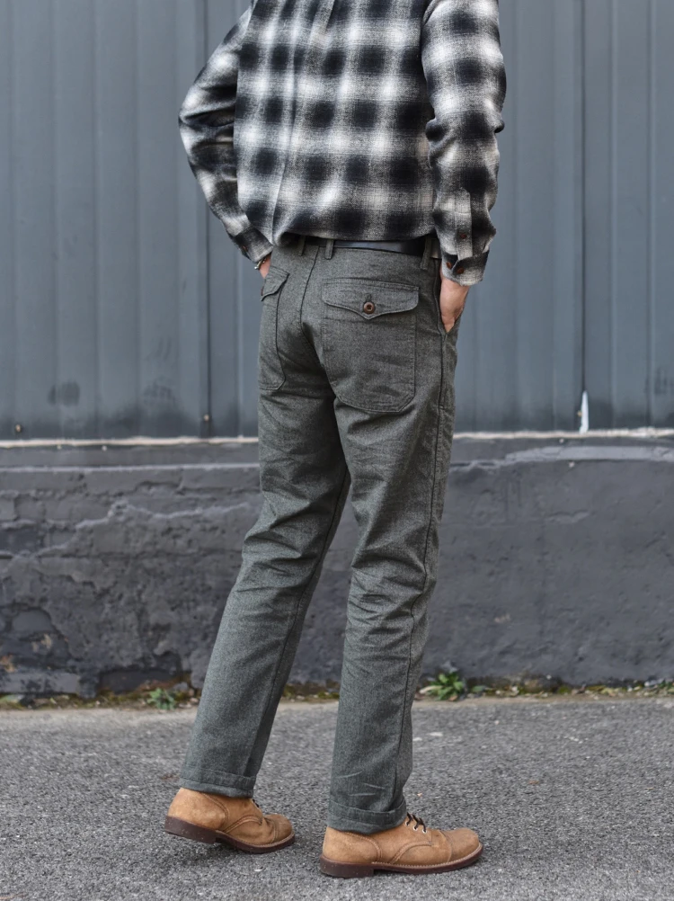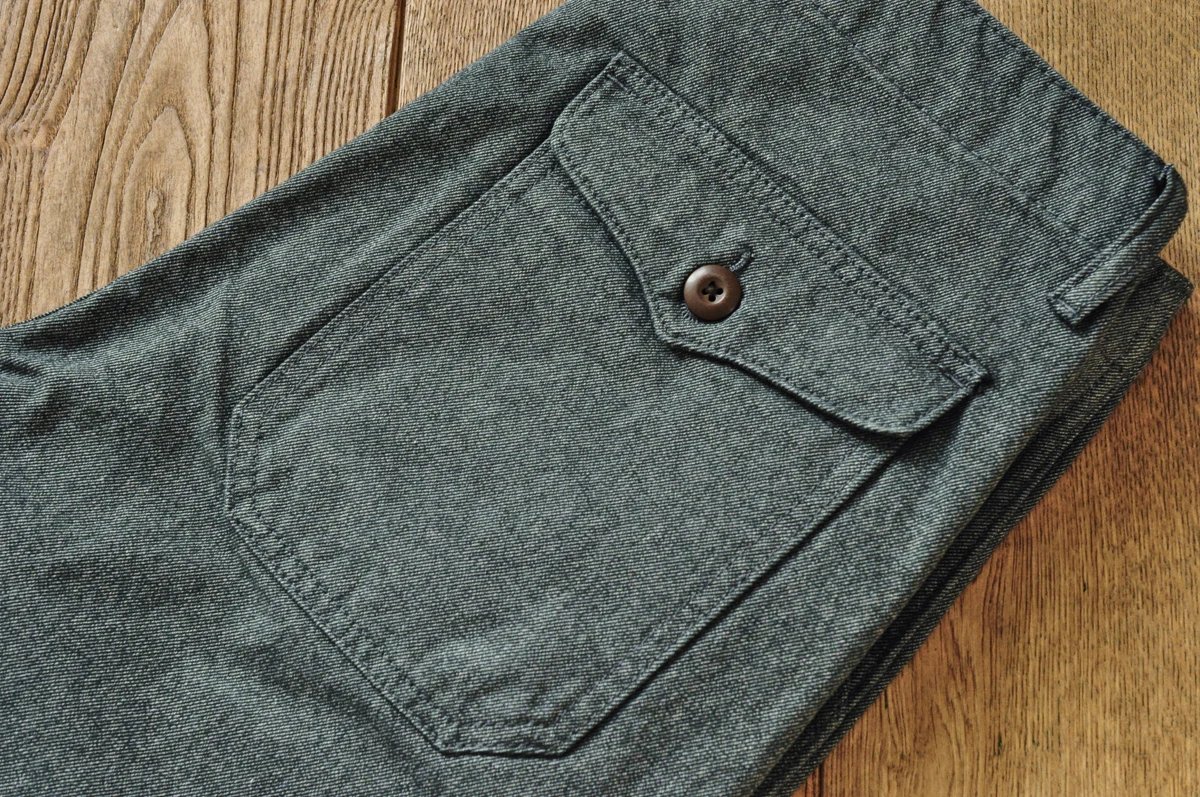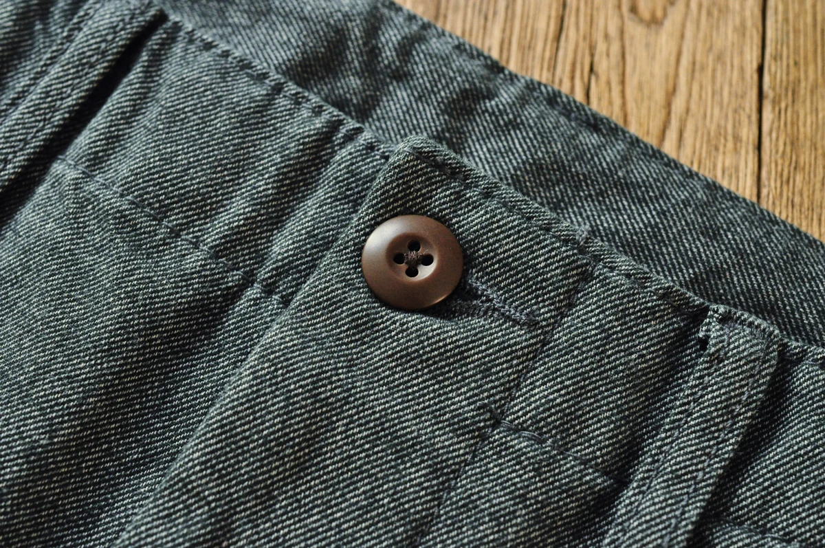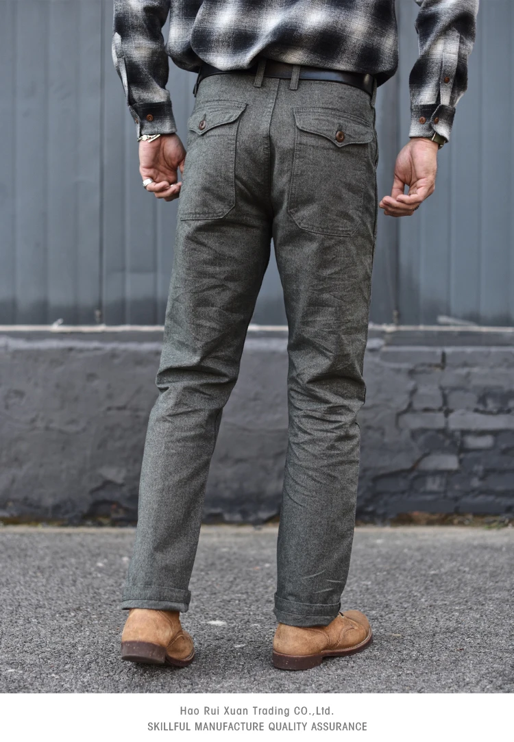This is a classic version of overalls. Its fabric is re-customized based on the fabric of the overalls of the 1940s. The fit of the trousers is the same as the OG107 military trousers in the store, with high waist and straight-leg pants. The fabric has been custom developed and matched with retro colors.