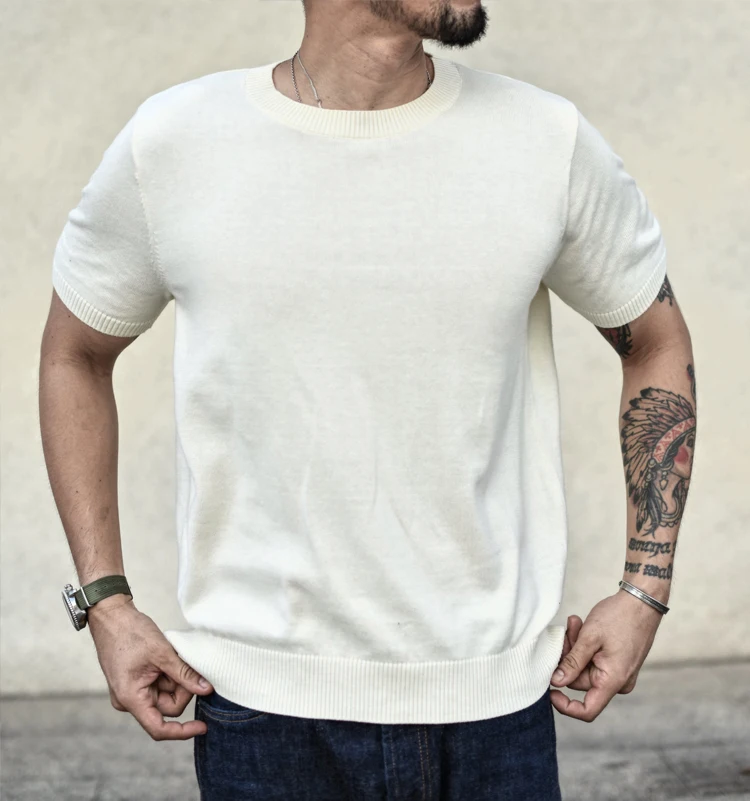 Saucezhan Tops & Tees T Shirts for Man Summer Knit Short Sleeve Shirt O-neck 100% Cotton