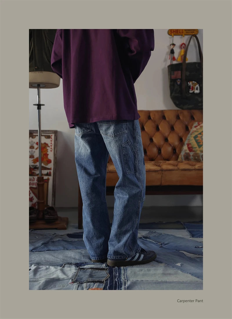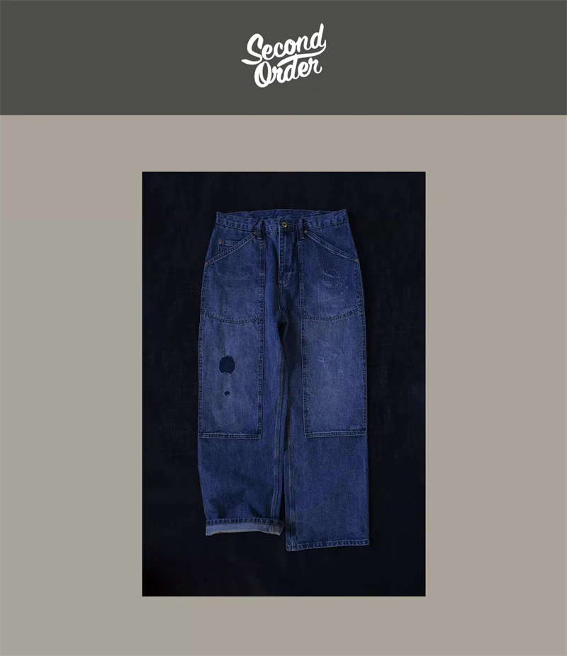 Second Order Double Knee Carpenter Jean Washed Selvage Denim Work Pants For Men